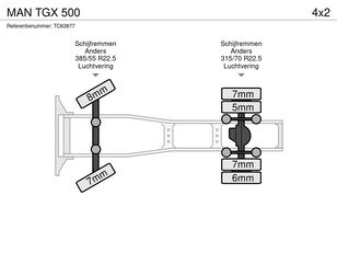 Első tengely: Gumiabroncs mérete: 385/55 R22.5; Kormányzás; Gumiabroncs profilja balra: 7 mm; Gumiabroncs profilja jobbra: 8 mm