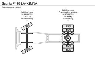 Rear axle: Tyre size: 315/70R22.5; Max. axle load: 11500 kg; Tyre profile left inner: 15%; Tyre profile left outer: 15%; Tyre profile right outer: 15%; Tyre profile right outer: 15%; Reduction: single reduction; Suspension: air suspension